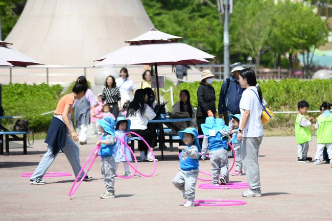 지난 5월 상동호수공원에서 열린 부천아이페스타에서 아이들이 즐겁게 놀고있다.부천시가 내년부터 출산지원금 지급 대상을 첫째아 출산가정까지 확대할 계획이라고 29일 밝혔다.