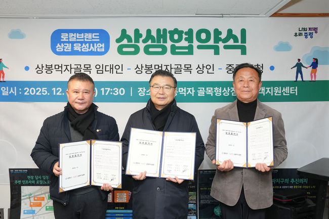 중랑구, 상봉먹자골목 로컬브랜드 상권 육성사업 상생협약 체결.5일 중랑구는 상봉먹자골목 임대인과 상인, 관계자들이 참석한 가운데 ‘로컬브랜드 상권 육성사업 상생협약’을 체결했다고 밝혔다. 협약은 지난 2025년 12월 20일 채결됐다.